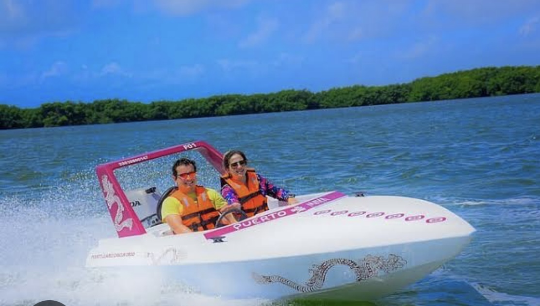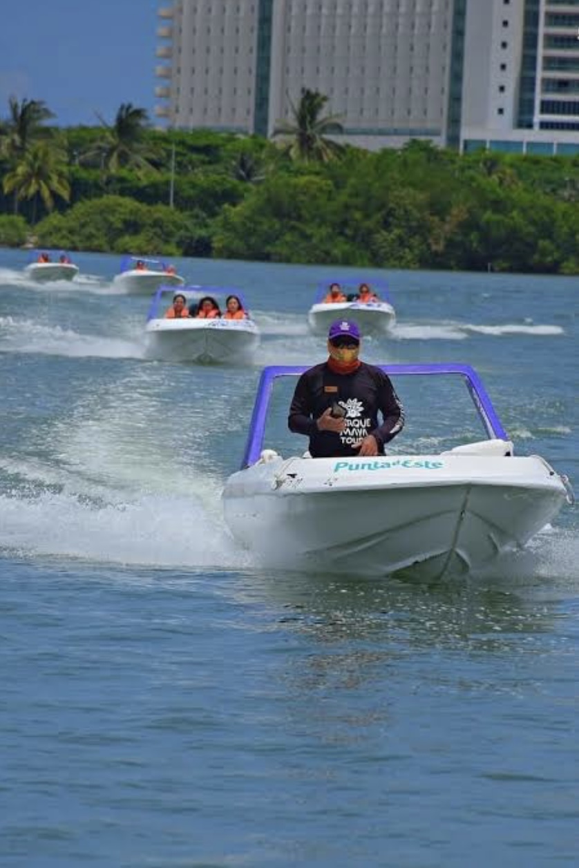 Experimenta la emoción de nuestro recorrido en lancha rápida en la Laguna Nichupté, mientras explora los impresionantes escenarios naturales de Cancún. Disfruta del jungle tour más completo en Puerto Maya Cancún. Aquí vivirás un paseo en lancha rápida a través de los manglares de la laguna Nichupté, para después admirar los maravillosos arrecifes de coral y su vida marina mientras practicas snorkel en el Caribe Mexicano. Nuestro jungle tour en Cancún también incluye una ceremonia maya tradicional y danzas prehispánicas, comida mexicana y guías experimentados. ¡Reserva ahora para explorar la exuberante naturaleza de Cancún de una manera única y emocionante! Experience the thrill of our speedboat tour in Laguna Nichupté, while exploring the stunning natural settings of Cancun. Enjoy the most complete jungle tour in Puerto Maya Cancún. Here you will experience a speedboat ride through the mangroves of the Nichupté lagoon, and then admire the wonderful coral reefs on the snorkel are