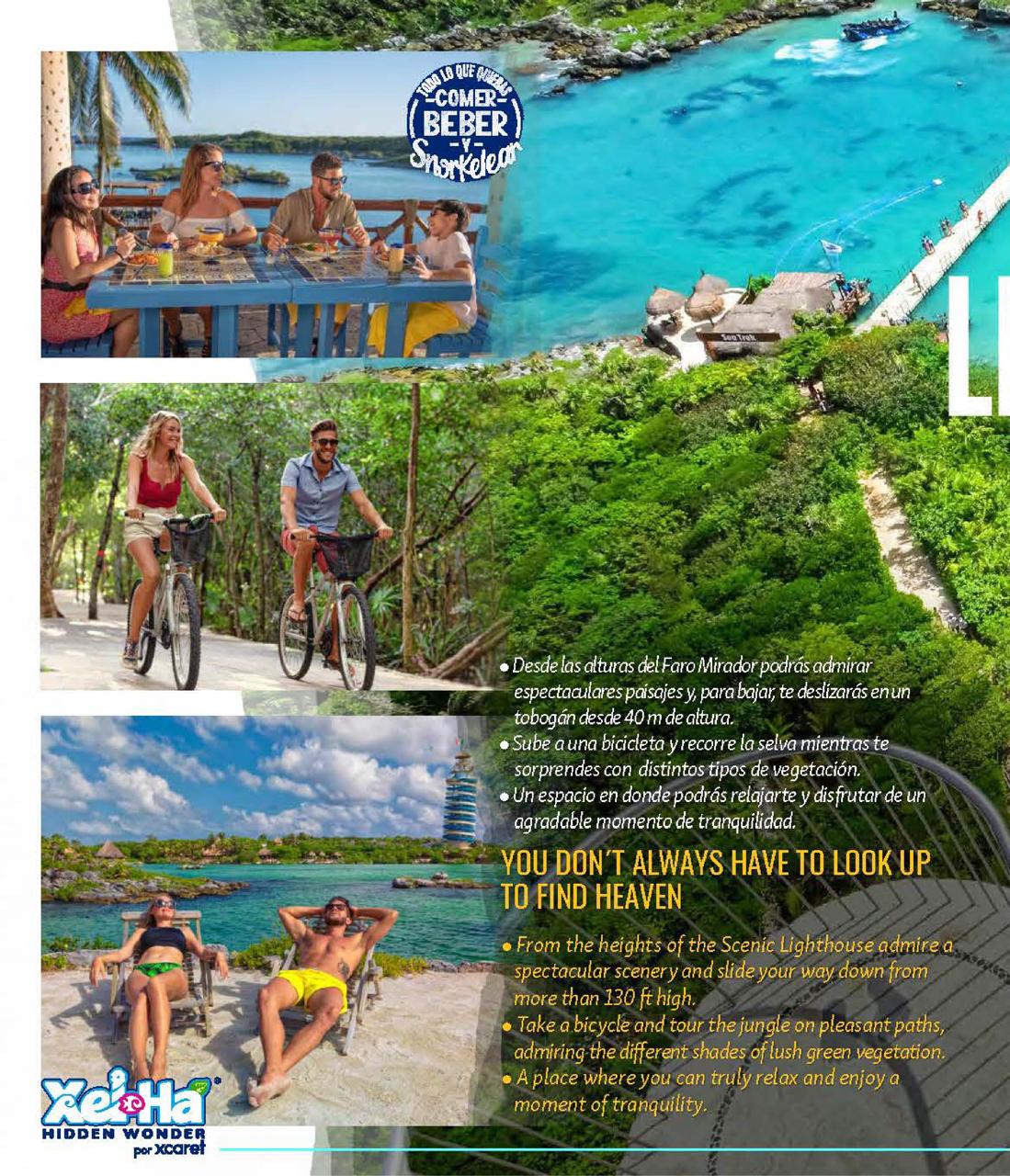 Xel-Há es un parque natural con actividades para toda la familia y que se caracterizan por ser sostenibles, aquí se snorkelea libremente en el único río rodeado de manglar cuyas aguas terminan por mezclarse con el mar Caribe. Se convive con diferentes especies terrestres y marinas mientras se disfruta de divertidas actividades para todas las edades. Se saborea desde un delicioso desayuno hasta una exquisita comida en este parque todo incluido y con un servicio de clase mundial. En el Parque algunas actividades cuentan con restricciones para mujeres embarazadas, personas que padecen epilepsia, asma, hipertensión, diabetes, o con problemas de cuello y/o espalda; con cirugías recientes o algún antecedente cardíaco. Por la seguridad del propio visitante se muestran dichas restricciones al inicio de cada actividad. Faro mirador: para realizar la actividad es necesario cumplir: Altura mínima 1.05cm, peso máximo de 120 kilos, no pueden realizarlo mujeres embarazadas, personas con ciru